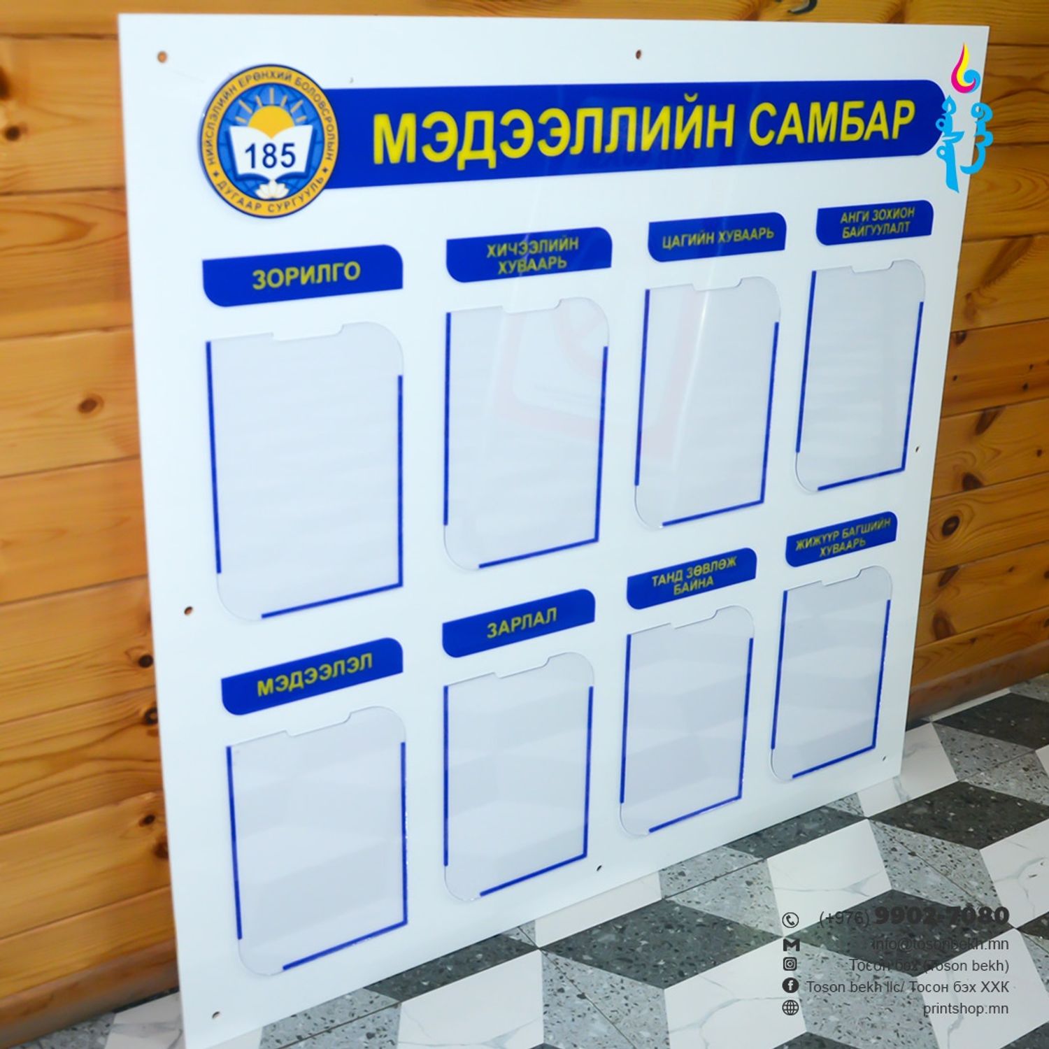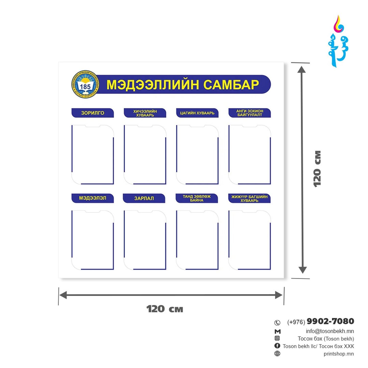 Өөрийн хүссэн загвараар лого, нэрээ крилл болон үндэсний бичгээр хийлгэн авах боломжтой. Хэвлэлийн үнэ болон НӨАТ багтсан болно.