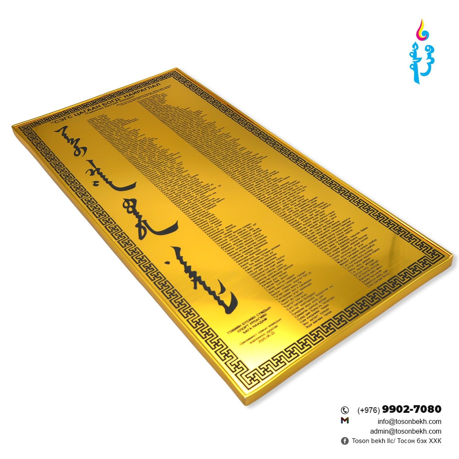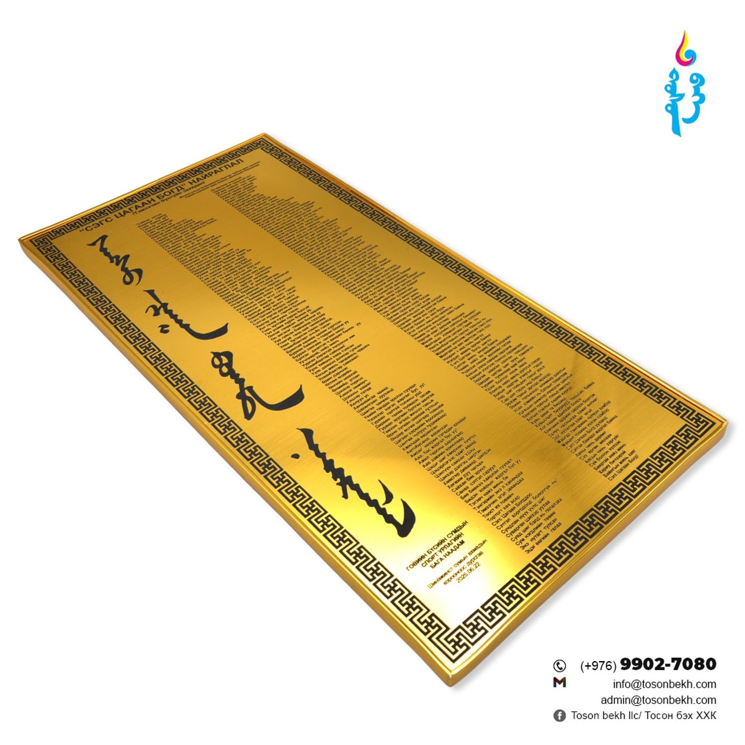 Тайлбар: Ухмалын хавтан дээр лазераар ухаж бэлтгэдэг,