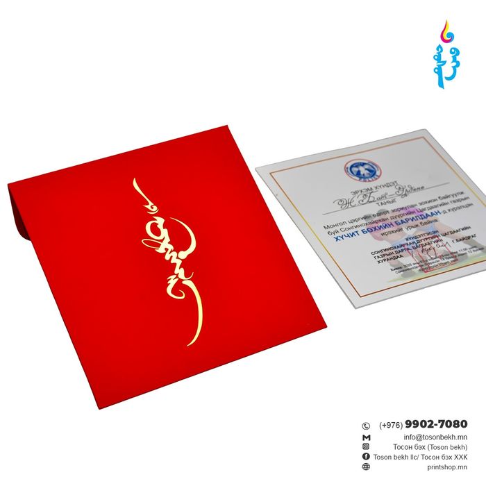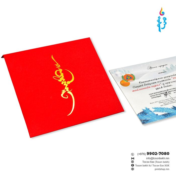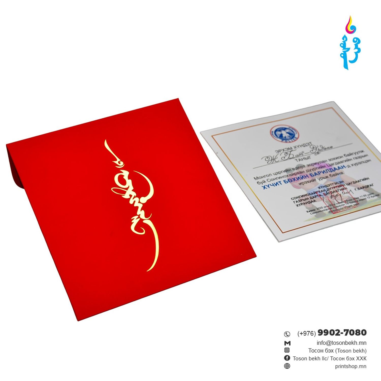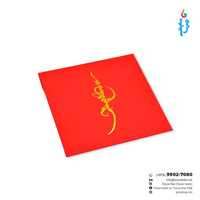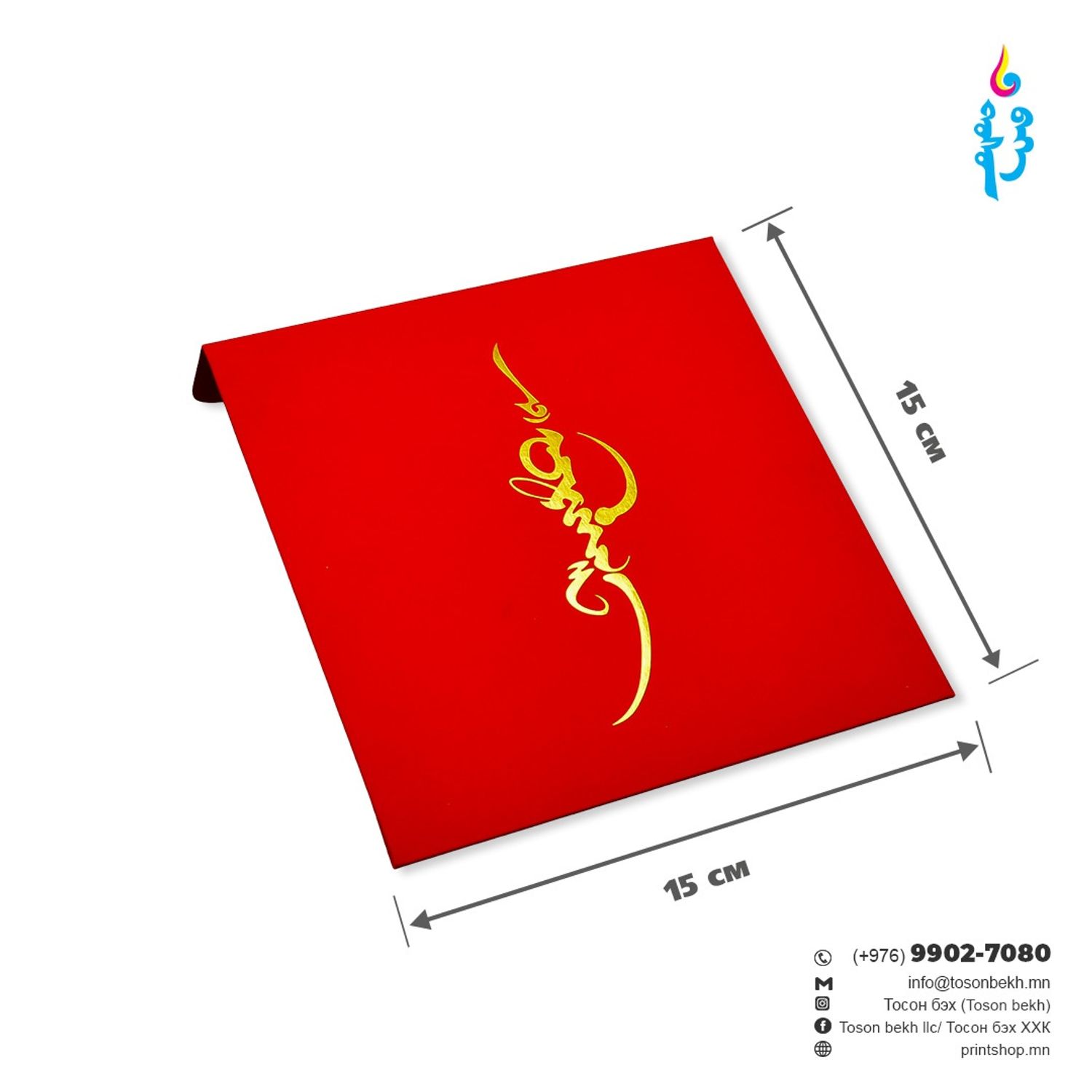 - Алтлаг товгор үндэсний бичгээр урилга гэсэн бичигтэй