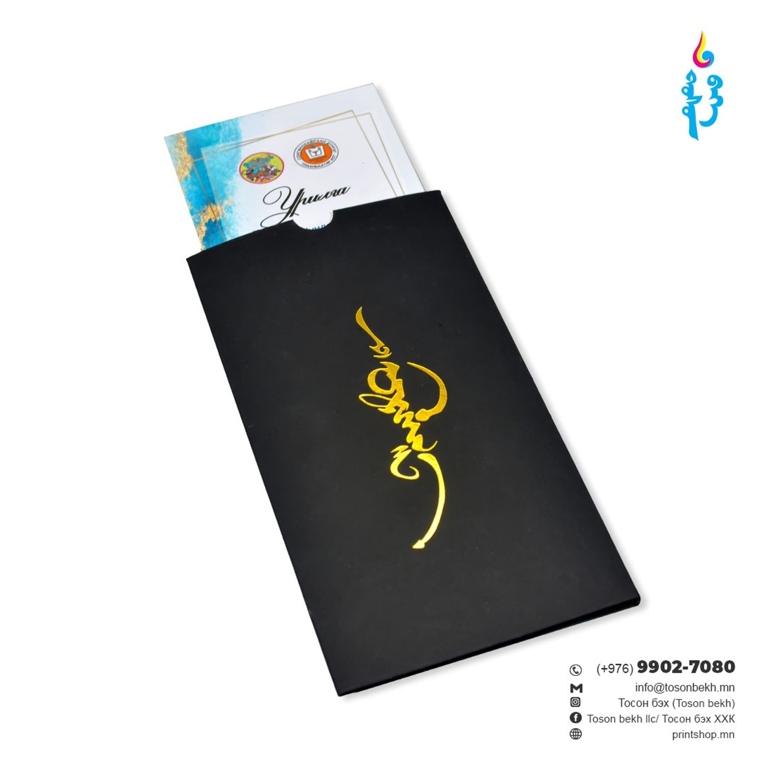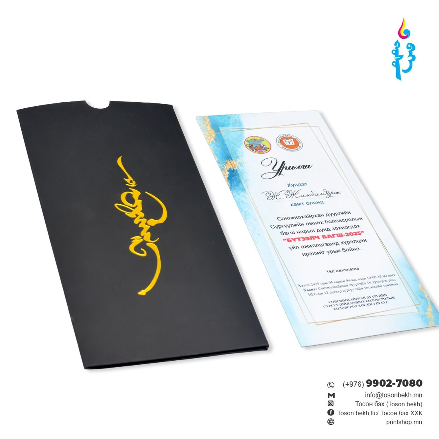 - Алтлаг товгор үндэсний бичгээр урилга гэсэн бичигтэй