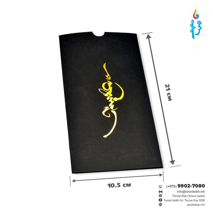 Өөрийн хүссэн загвараар лого, нэрээ хэвлүүлэн авах боломжтой. Хэвлэлийн үнэ болон НӨАТ багтсан болно